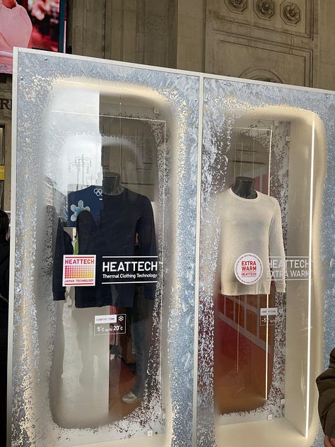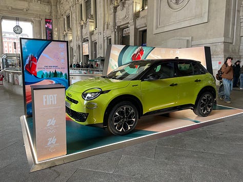 Torniamo in Stazione Centrale con l’esposizione di Fiat 500 Sport Edizione Milano Cortina e il maxi Pop Up (anche questo sarà costato parecchio, ma è Worldwide Partner delle Olimpiadi) di TCL Electronics, azienda cinese di elettronica di consumo leader a livello globale nel settore dei pannelli display, TV, comfort domestico e dispositivi mobile. Sempre in Stazione c’è anche un Pop Up di Uniqlo (non un granchè a livello visivo, in confronto al resto) per presentare Heattech, la linea termica progettata per offrire calore e comfort durante la stagione invernale.