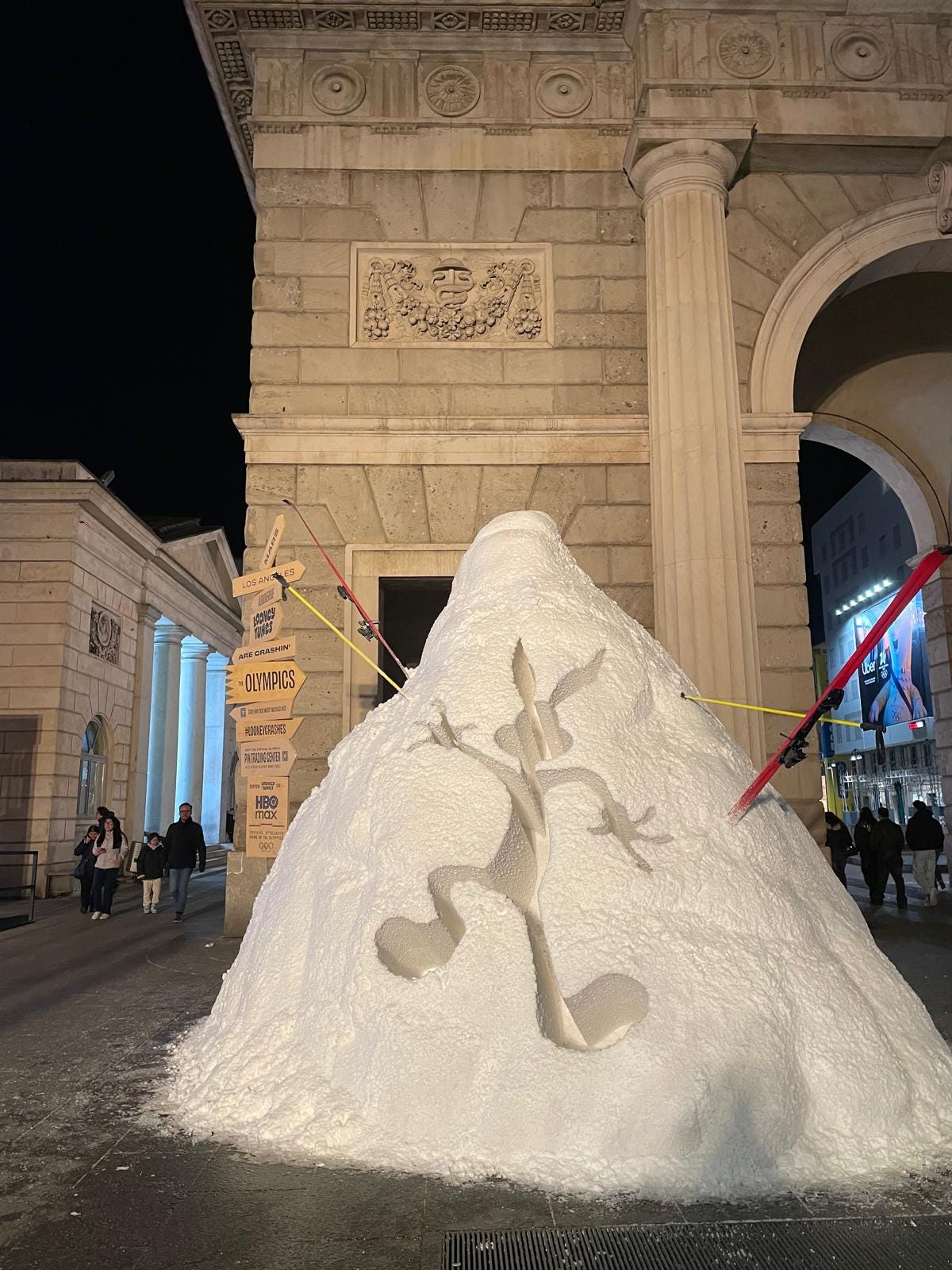 Di fronte, sempre in piazza XXV Aprile, una installazione di HBO Max Italia (che in questi giorni aveva anche brandizzato le vetrine della Rinascente): rappresenta una maxi montagna di neve (finta) sulla quale si è schiantato Bugs Bunny. Molto carina, di poche pretese ma very Instagram friendly.