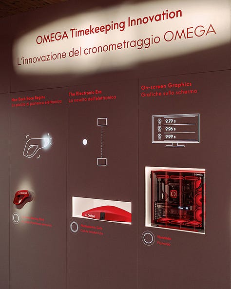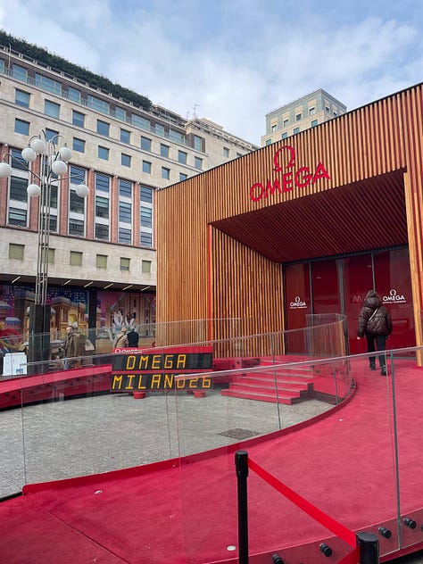 Omega, invece, ha aperto in Piazza San Babila il Padiglione OMEGA (sì, sembra un po’ di stare all’Expo - di brand), che celebra la sua lunga tradizione come Cronometrista Ufficiale dei Giochi Olimpici e Paralimpici, ruolo che ricopre dal 1932.